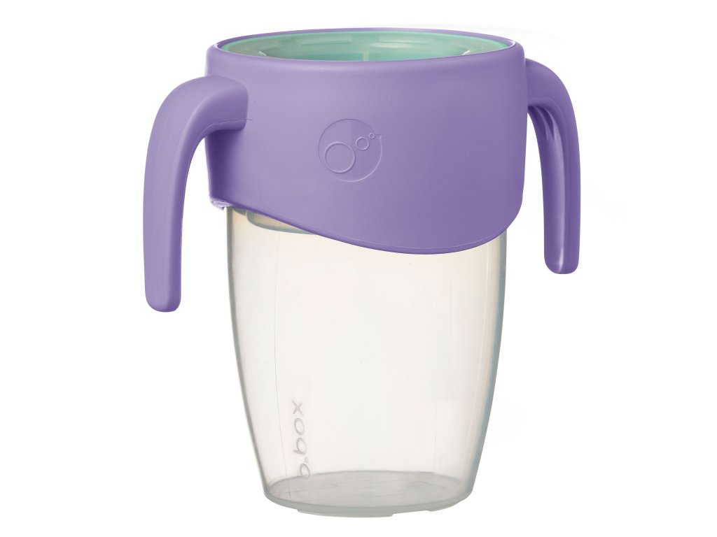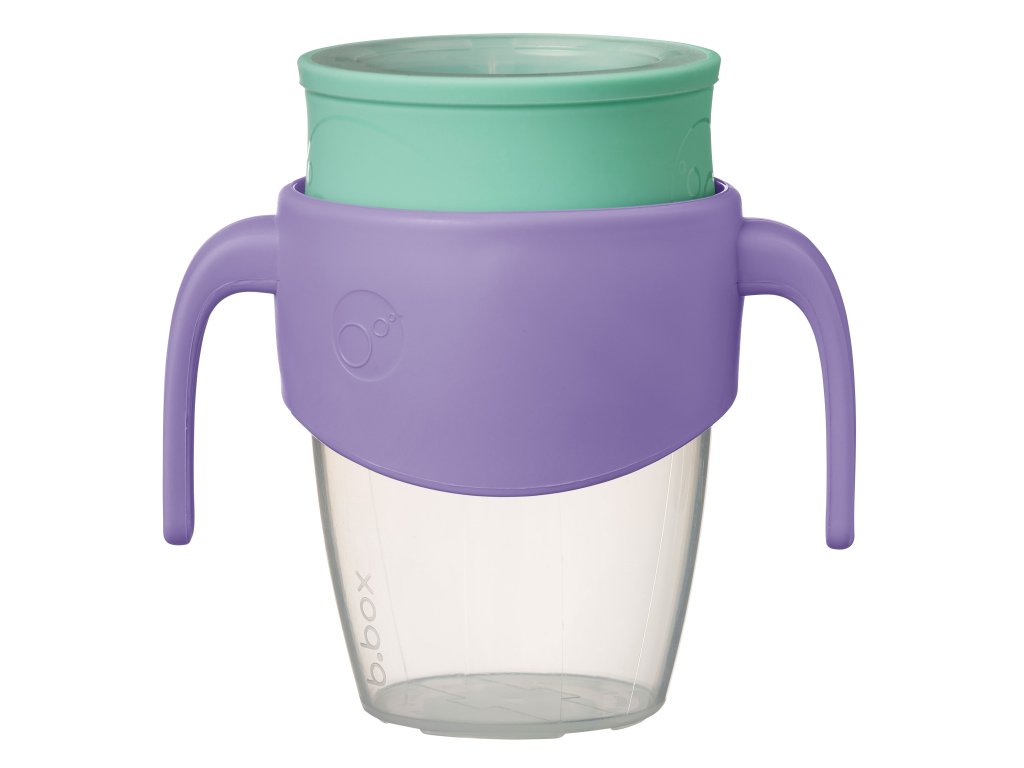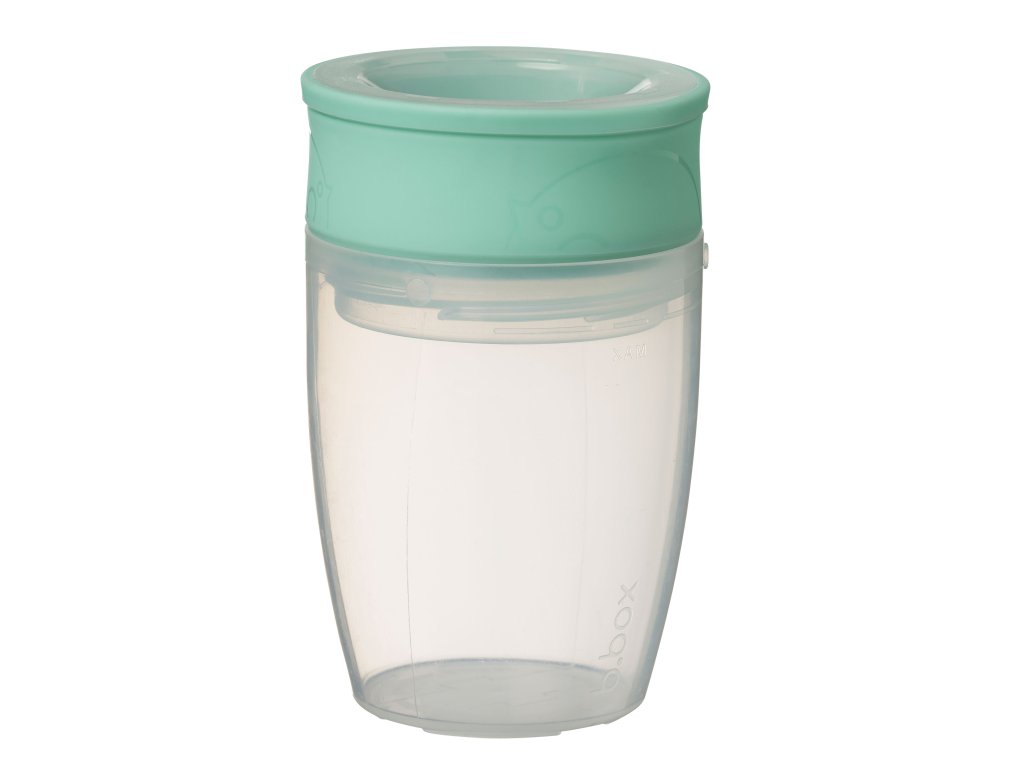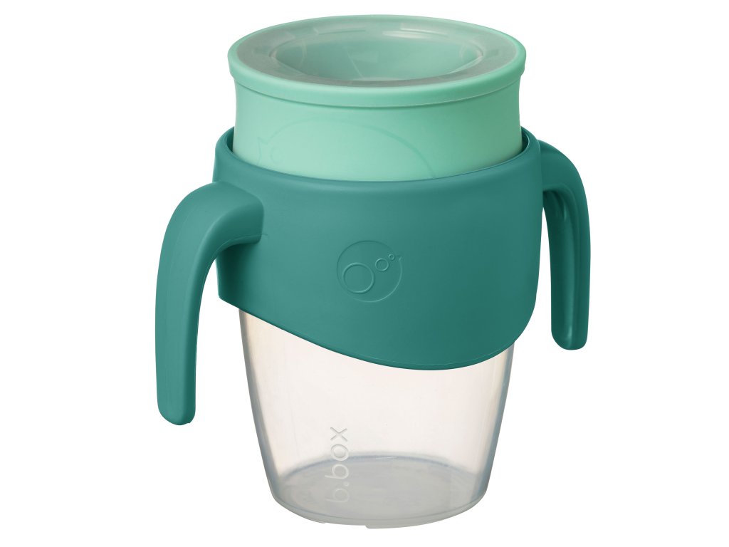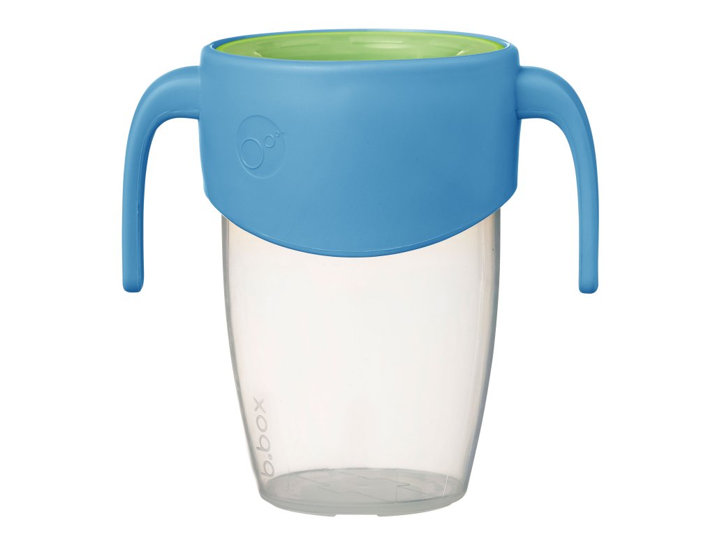 360° netekoucí učící hrneček od značky b.box dovoluje dětem nápoj z hrnečku jen usrkávat, ale hlavně učit se pít díky unikátnímu měkkému silikonovému okraji po celém okraji hrnečku.