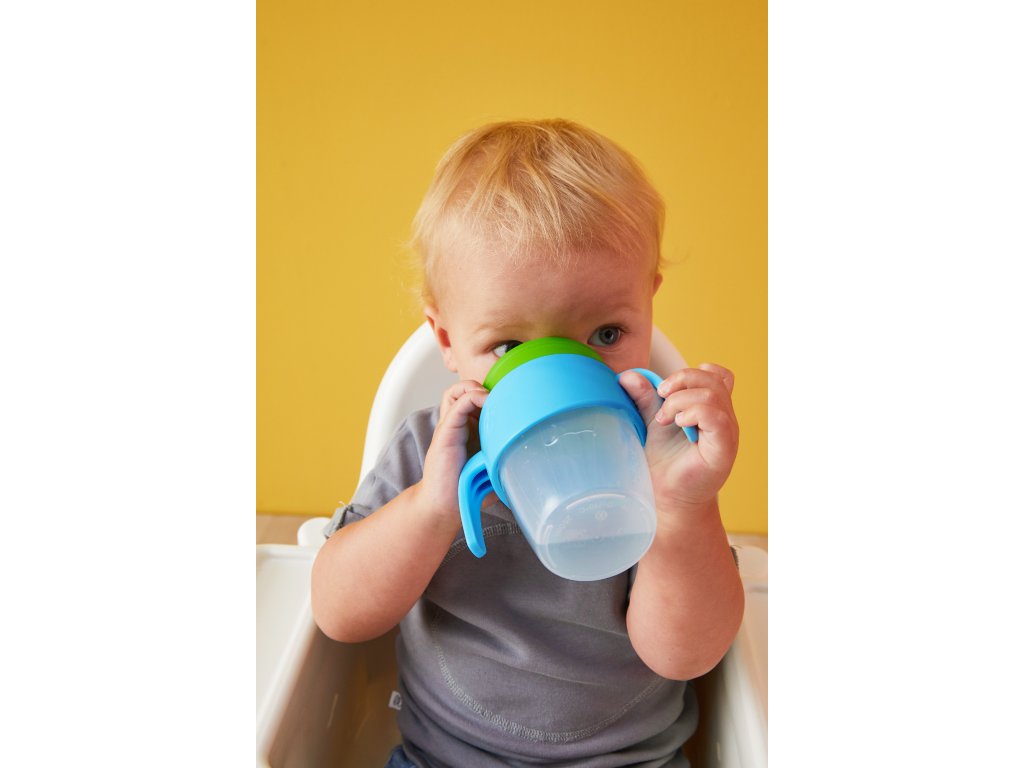 - Průhledná základna hrnečku umožňuje sledovat hladinu vody a pitný režim dítěte