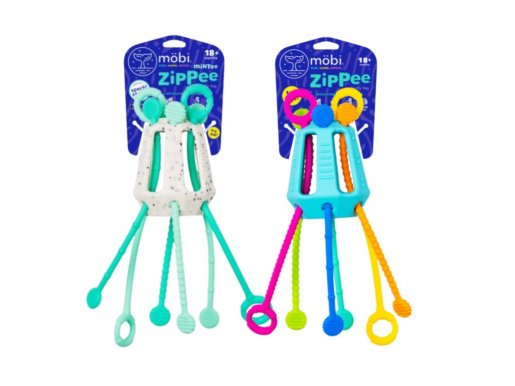 Dětské prstíčky neodolají pružným silikonovým provázkům různých textur a tvarů a snadno uchopitelným rukojetím. Miminka a batolata budou milovat tahání za šňůrky Zippee ze strany na stranu, cítit různé vibrace a zvuky, potěšení pro smysly všech prcků. Zippee byl inspirován malou Kate, která milovala stahování tkaniček! Návrháři Zippee se spojili s lékaři a terapeuty, aby vytvořili alternativu, která bude čistá, bezpečná a zábavná se smyslovým vstupem.